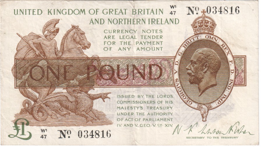 Treasury 1 Pound, from 1927TR19b - W1 471 Poundfrom 1927