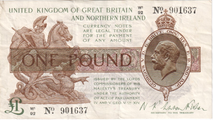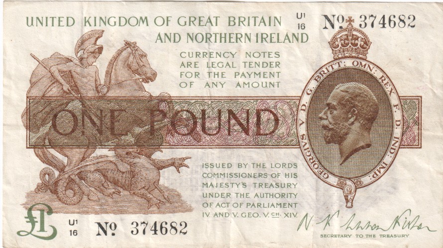Treasury 1 Pound, from 1927TR19b - U11 Poundfrom 1927