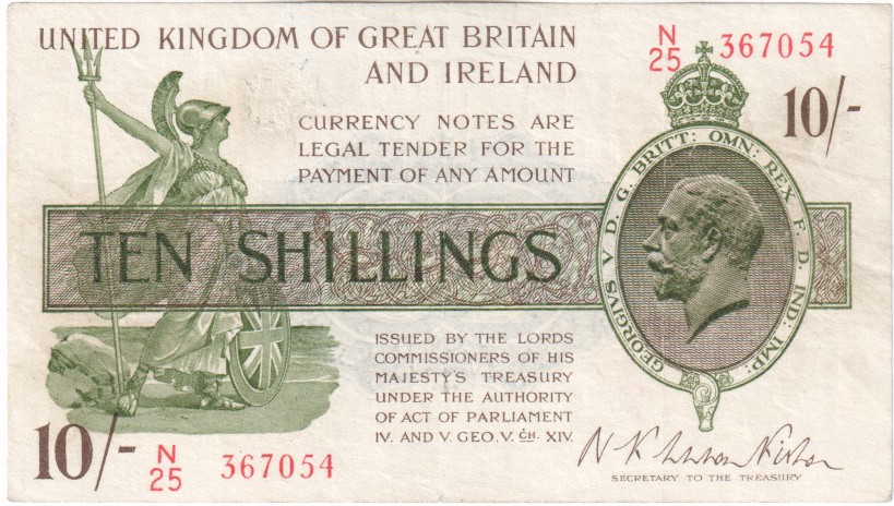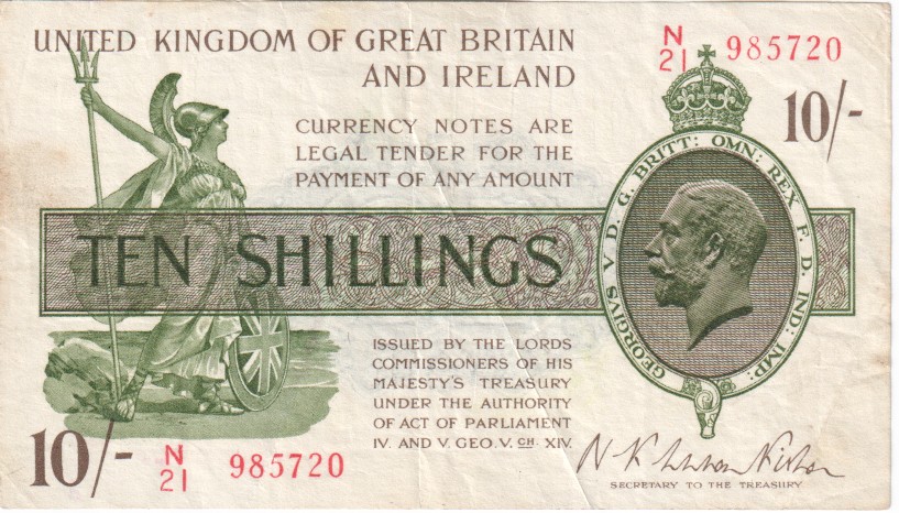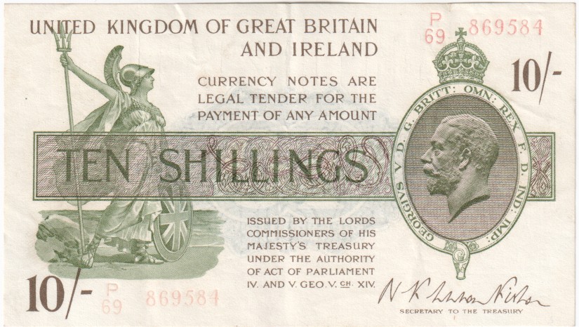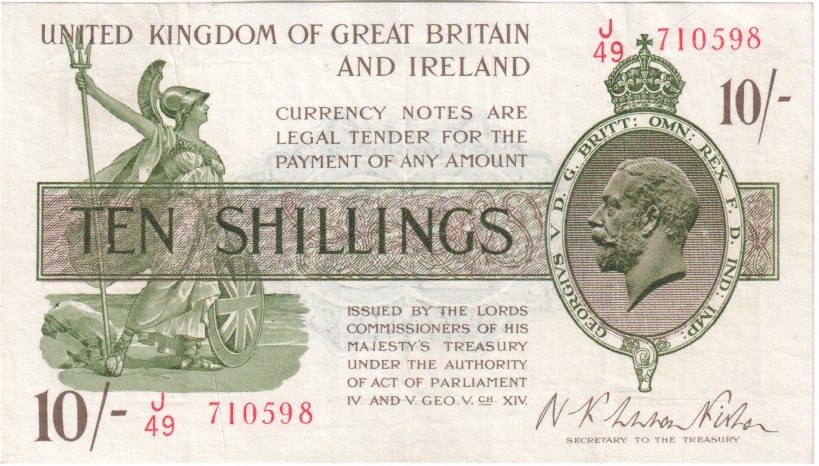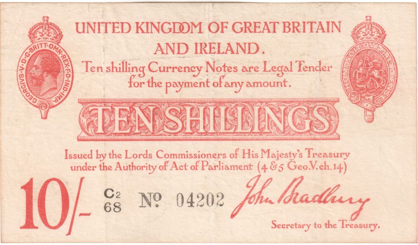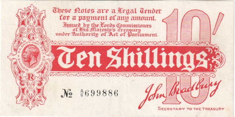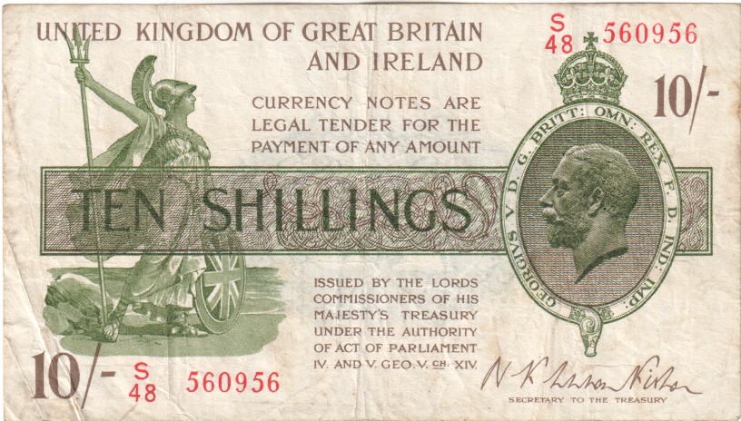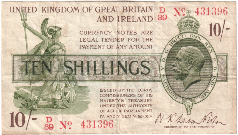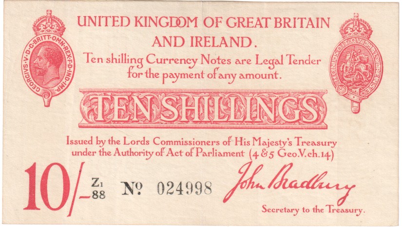 Treasury 10 Shillings, from 1914TR1a - A610 Shillingsfrom 1914
