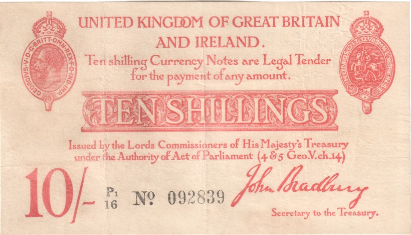 Treasury 10 Shillings, from 1915TR3b - P1 1610 Shillingsfrom 1915