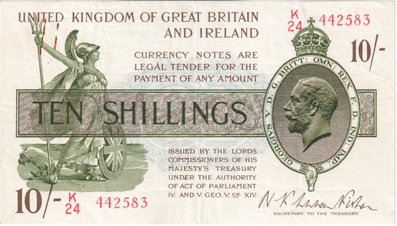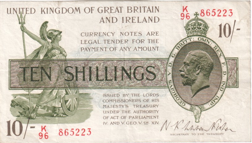 Treasury 10 Shillings, from 1919TR7b - D3910 Shillingsfrom 1919