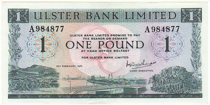 Ulster Bank Ltd 1 Pound, 15. 2.1971NI.806a1 Pound15. 2.1971
