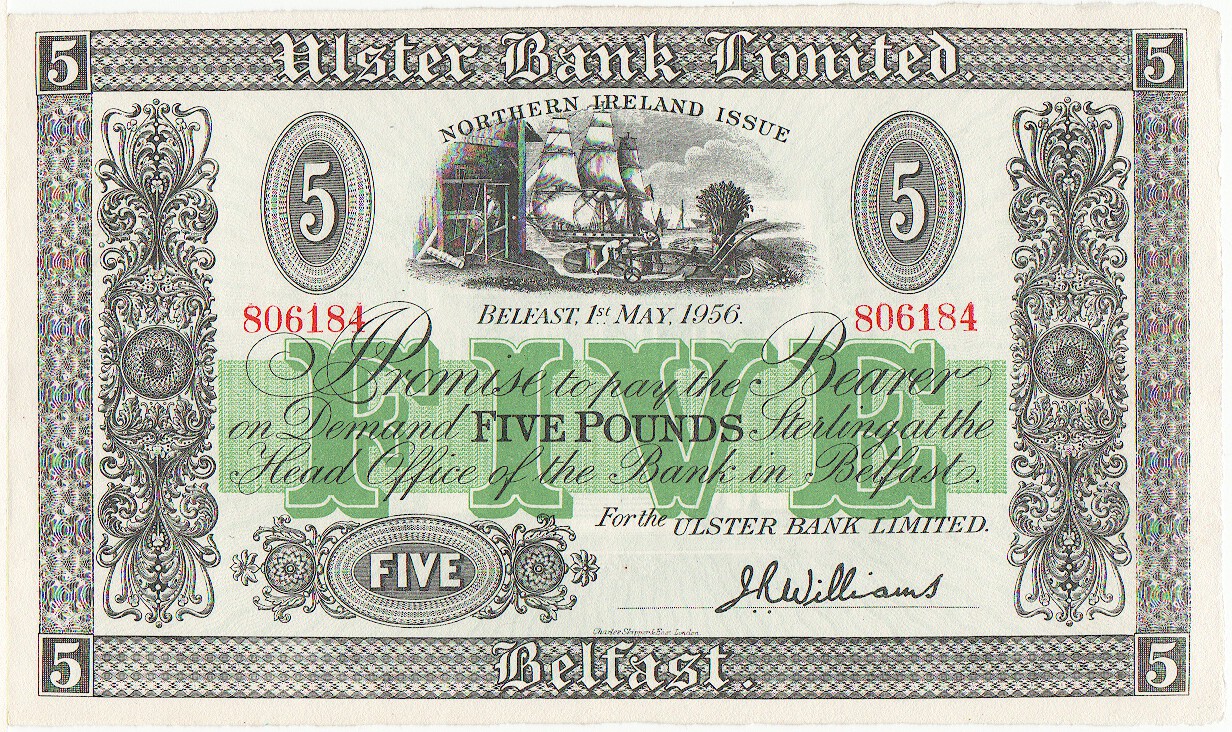Ulster Bank Ltd 5 Pounds,  1. 5.1956NI.813b5 Pounds 1. 5.1956
