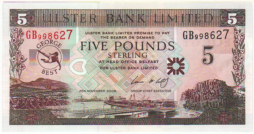 Ulster Bank Ltd 5 Pounds, 25.11.2006NI.8185 Pounds25.11.2006