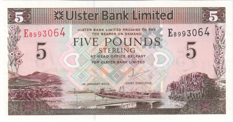 Ulster Bank Ltd 5 Pounds,  1. 1.2013NI.8205 Pounds 1. 1.2013