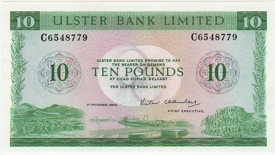 Ulster Bank Ltd 10 Pounds,  1.10.1983NI.825c10 Pounds 1.10.1983