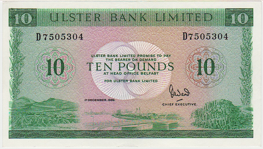 Ulster Bank Ltd 10 Pounds,  1.12.1989NI.825d10 Pounds 1.12.1989