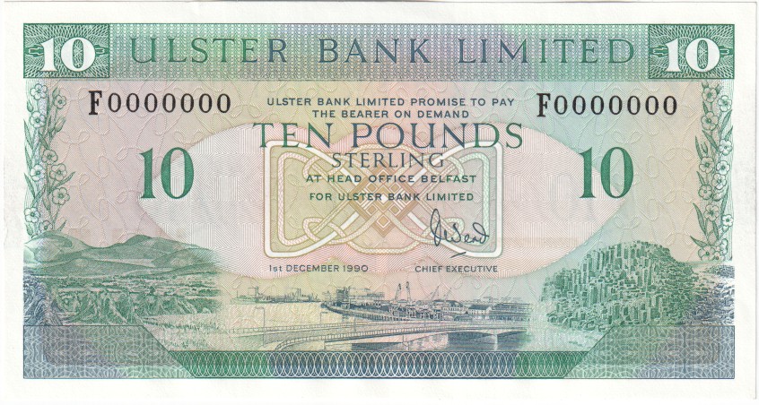 Ulster Bank Ltd 10 Pounds,  1. 12.1990NI.826s10 Pounds 1. 12.1990