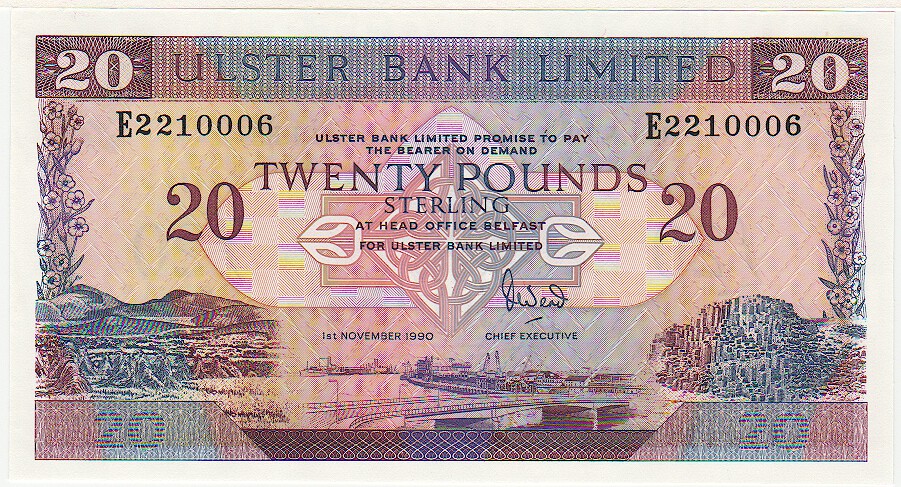 Ulster Bank Ltd 20 Pounds,  1.11.1990NI.83420 Pounds 1.11.1990