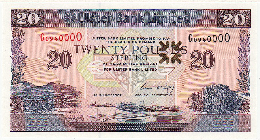 Ulster Bank Ltd 20 Pounds,  1. 1.2007NI.836a20 Pounds 1. 1.2007