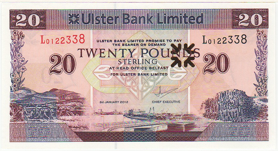 Ulster Bank Ltd 20 Pounds,  3. 1.2012NI.836b20 Pounds 3. 1.2012