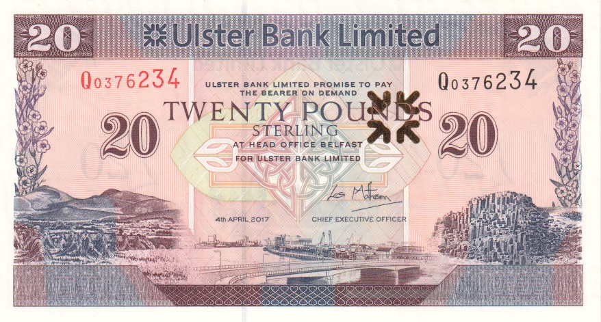 Ulster Bank Ltd 20 Pounds,  4. 4.2017NI.836c20 Pounds 4. 4.2017