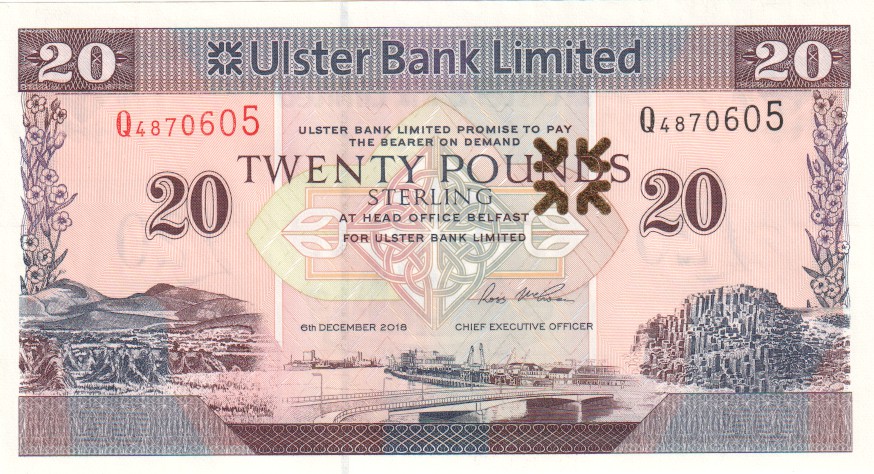 Ulster Bank Ltd 20 Pounds,  6.12.2018NI.836d20 Pounds 6.12.2018