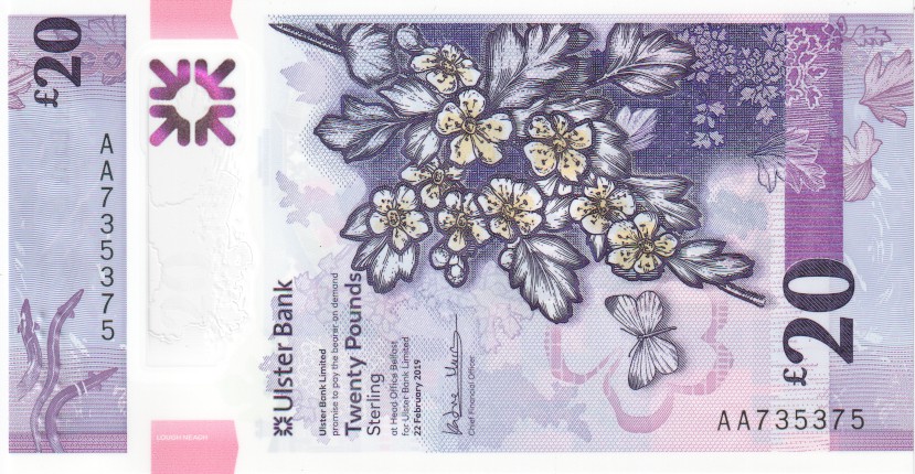 Ulster Bank Ltd 20 Pounds, 22. 2.2019NI.83820 Pounds22. 2.2019