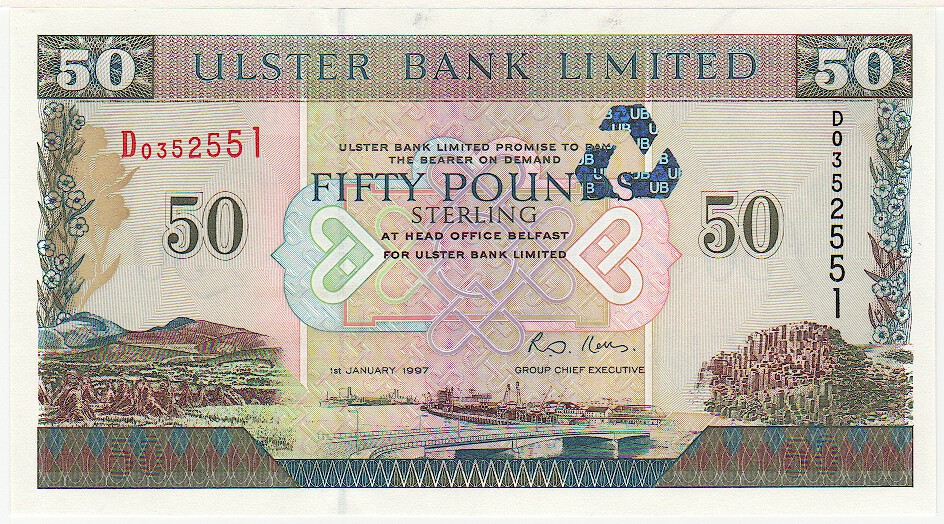 Ulster Bank Ltd 50 Pounds,  1. 1.1997NI.84450 Pounds 1. 1.1997