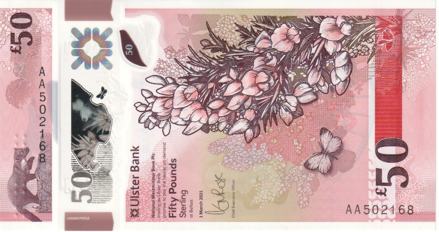 Ulster Bank Ltd 50 Pounds,  1. 3.2021NI.84550 Pounds 1. 3.2021