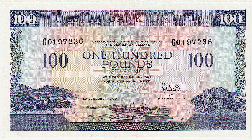 Ulster Bank Ltd 100 Pounds,  1.12.1990NI.854100 Pounds 1.12.1990