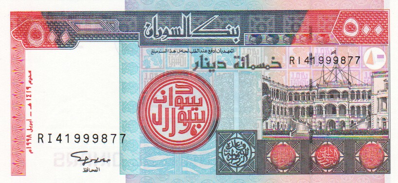 SDN 500 Dinars, 199858b500 Dinars1998UNC£8.00