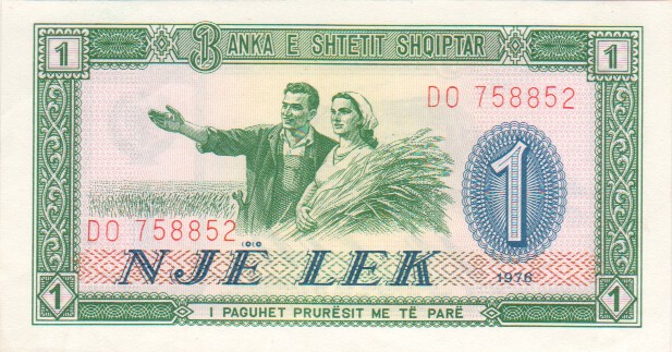 Albania 1 Lek, 197640a1 Lek1976UNC£2.50