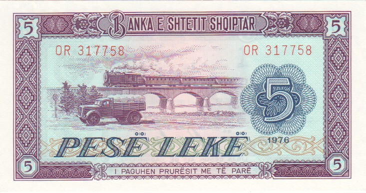 Albania 5 Leke, 197642a5 Leke1976UNC£2.00