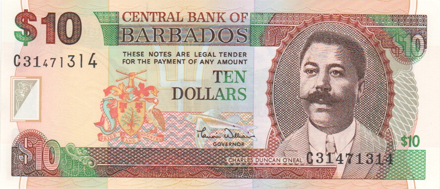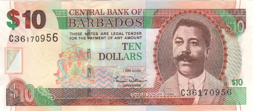 Barbados 10 Dollars,  1. 5.200768a10 Dollars 1. 5.2007UNC£8.00