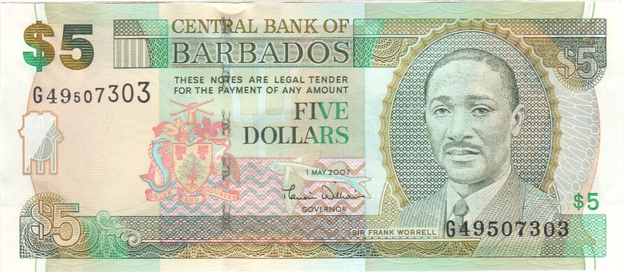 Barbados 5 Dollars,  1. 5.200767a5 Dollars 1. 5.2007UNC£5.00