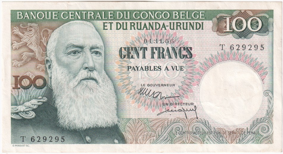 Belgian Congo 100 Francs,  4.11.195633b100 Francs 4.11.1956EF£145.00