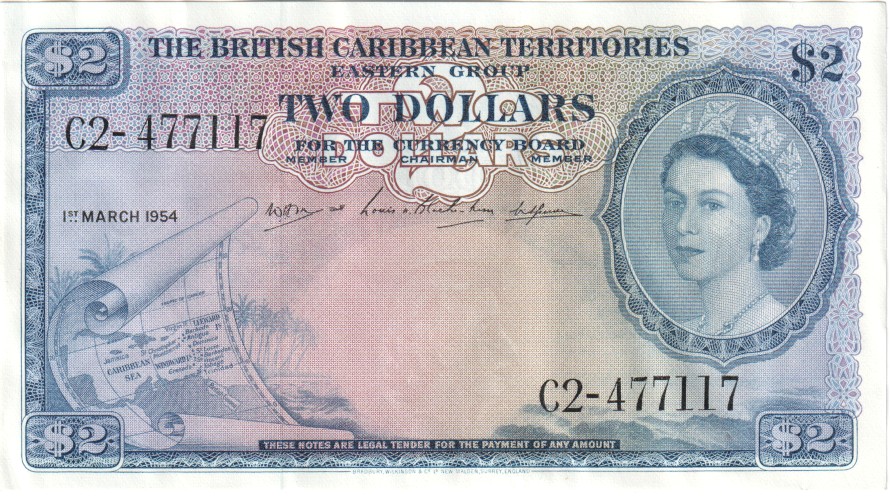 British Caribbean Territories 2 Dollars,  1. 3.19548b2 Dollars 1. 3.1954aUNC£620.00
