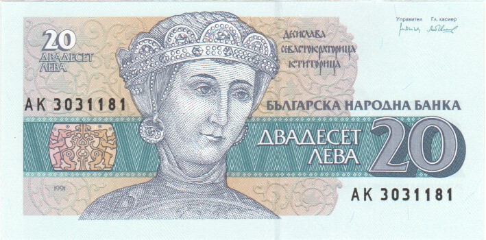 Bulgaria 20 Leva, 199110020 Leva1991UNC£1.00