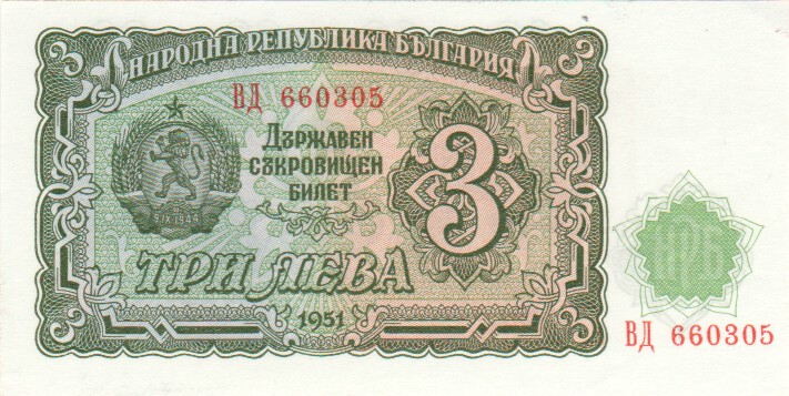 Bulgaria 3 Leva, 1951813 Leva1951UNC£1.00