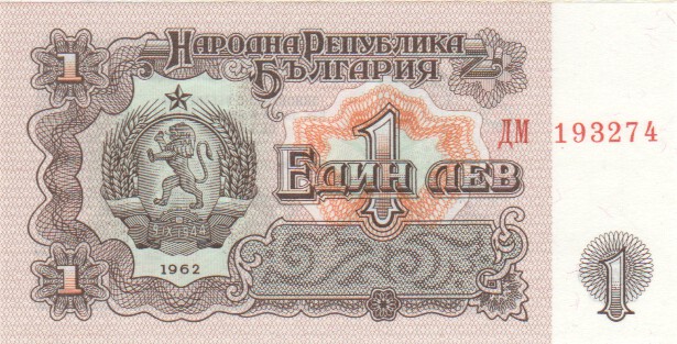 Bulgaria 1 Lev, 196288a1 Lev1962UNC£2.50