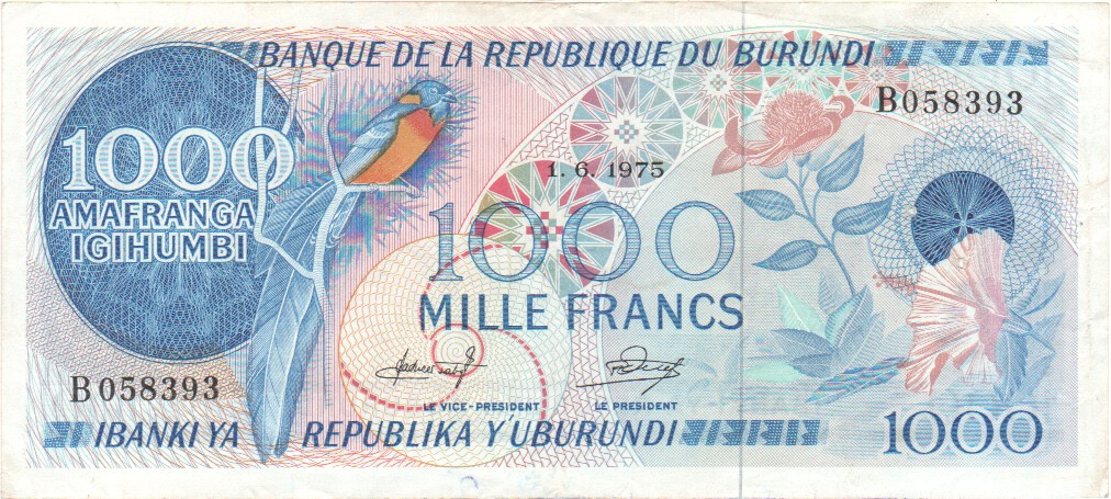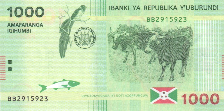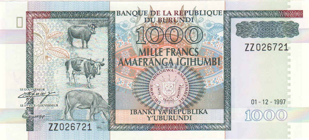 Burundi 1000 Francs,  1. 7.200039c1000 Francs 1. 7.2000UNC£4.00