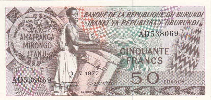 Burundi 50 Francs, 19. 5.199436a50 Francs19. 5.1994UNC£1.00