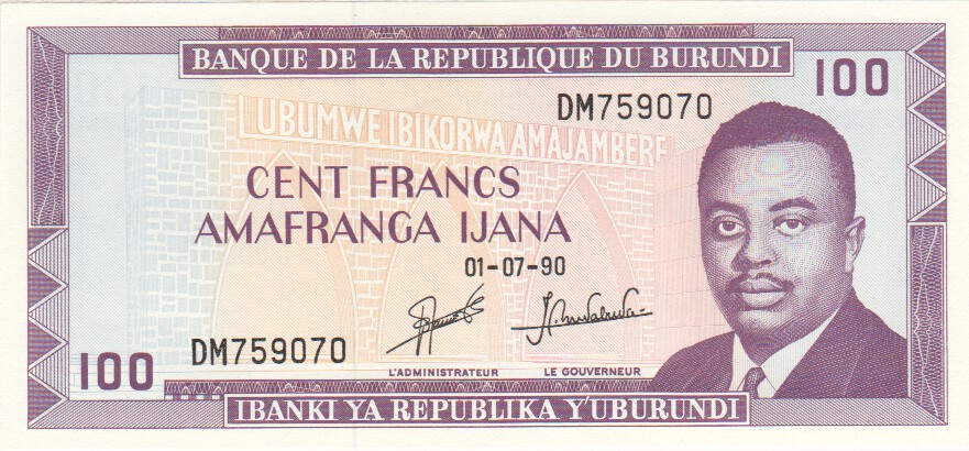 Burundi 100 Francs,  1. 7.199029c100 Francs 1. 7.1990UNC£3.50