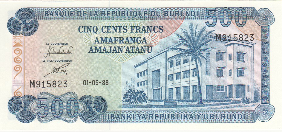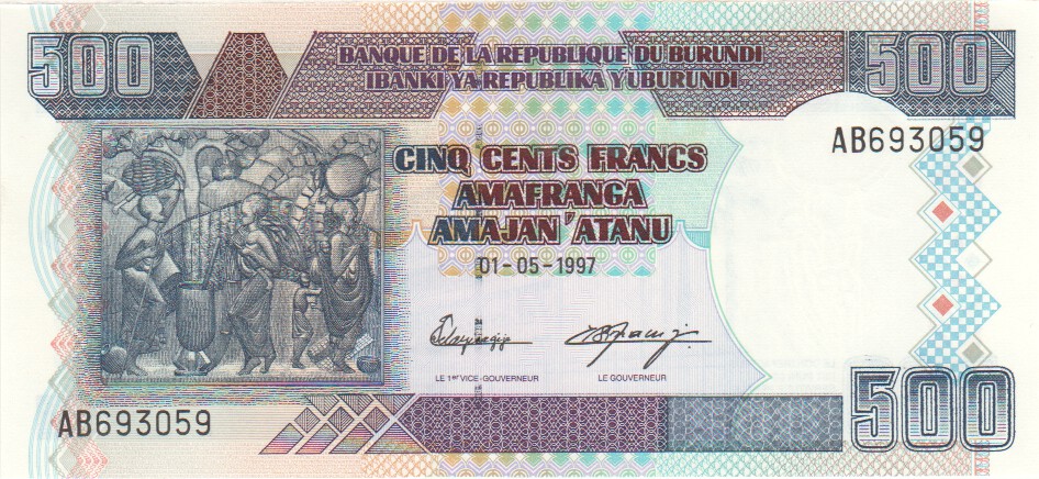 Burundi 500 Francs,  1. 5.198830c500 Francs 1. 5.1988UNC£23.00