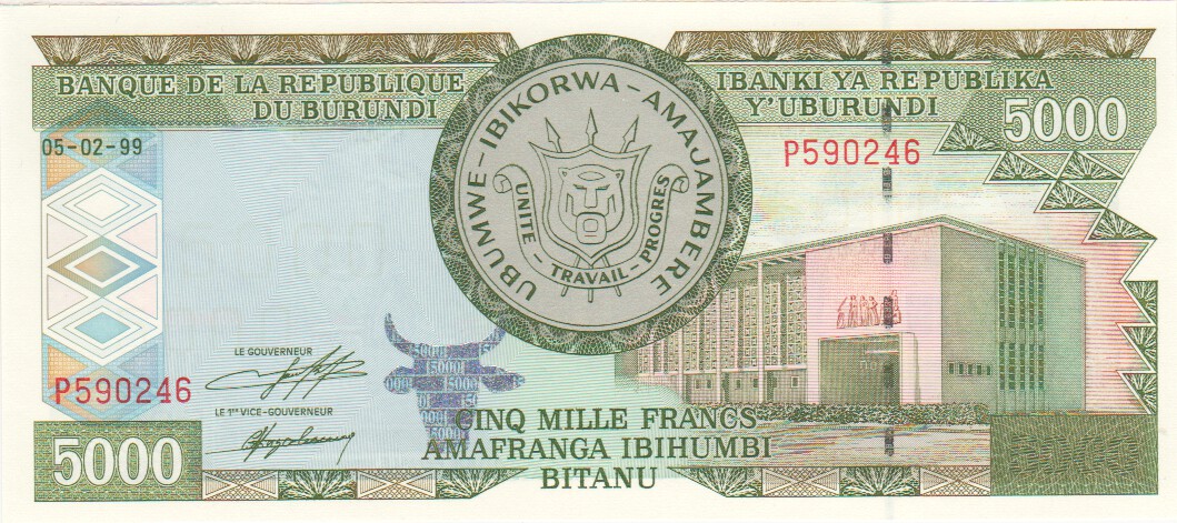 Burundi 5000 Francs,  5. 2.199942a5000 Francs 5. 2.1999UNC£14.00