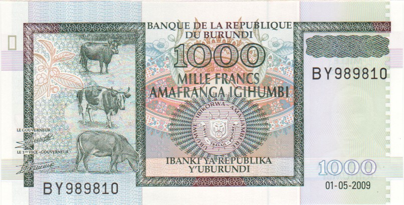 Burundi 1000 Francs,  1. 5.2009461000 Francs 1. 5.2009UNC£2.50