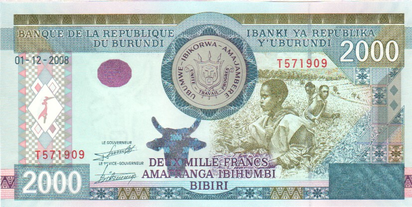 Burundi 2000 Francs,  1.12.2008472000 Francs 1.12.2008UNC£4.00