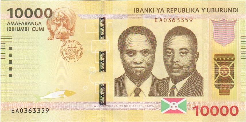 Burundi 10,000 Francs, 15. 1.20155410,000 Francs15. 1.2015UNC£14.00