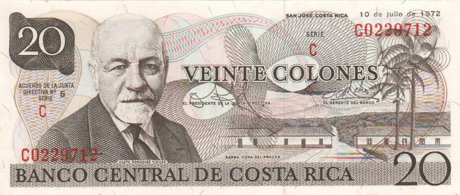 Costa Rica 20 Colones,  6. 9.1972238a20 Colones 6. 9.1972aU/UNC£12.50
