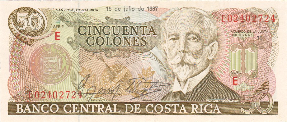 Costa Rica 50 Colones, 29. 7.1992257a50 Colones29. 7.1992UNC£3.50
