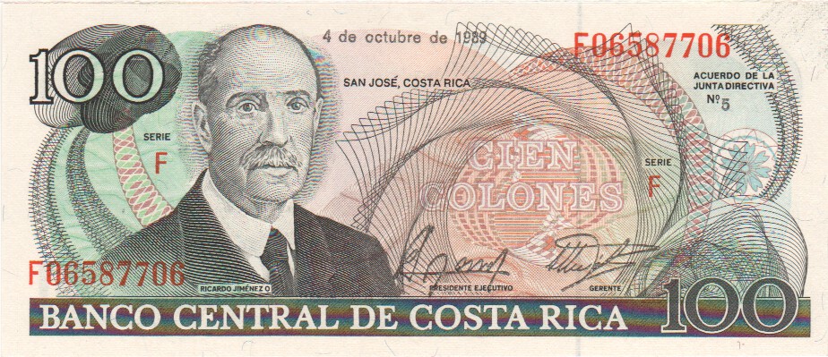 Costa Rica 5 Colones,  4.10.1989236d5 Colones 4.10.1989UNC£3.00
