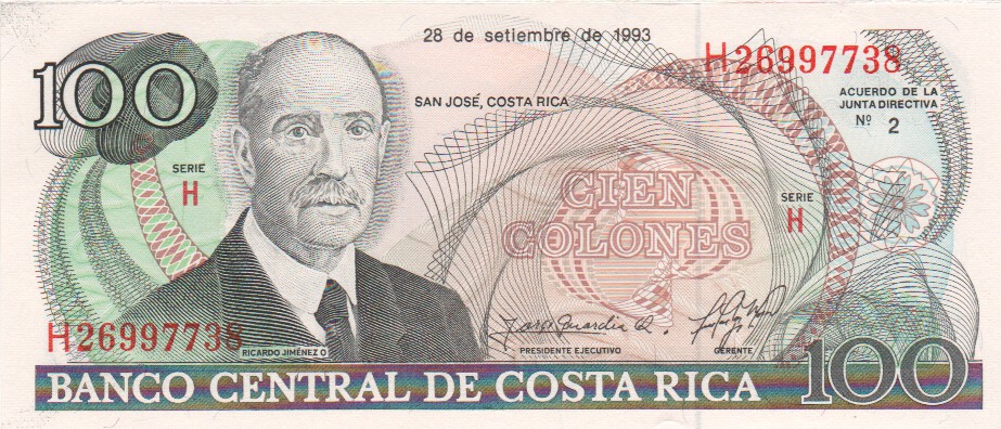 Costa Rica 100 Colones, 28. 9.1993261100 Colones28. 9.1993UNC£4.50