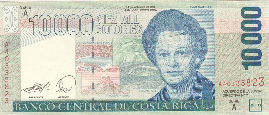 Costa Rica 10,000 Colones, 14. 9.2005267d10,000 Colones14. 9.2005VF+£16.00