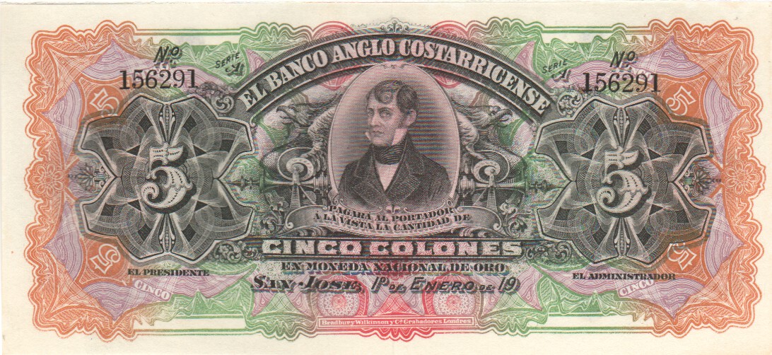 Costa Rica 5 Colones, (1908)S-173r5 Colones(1908)UNC£70.00Unissued remainder
