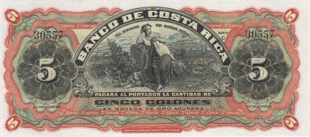 Costa Rica 5 Colones, (1911)S-122r5 Colones(1911)UNC£15.00Unissued remainder