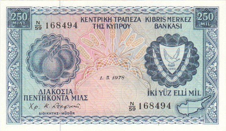 Cyprus 250 Mils,  1. 7.197541c250 Mils 1. 7.1975aEF£25.00