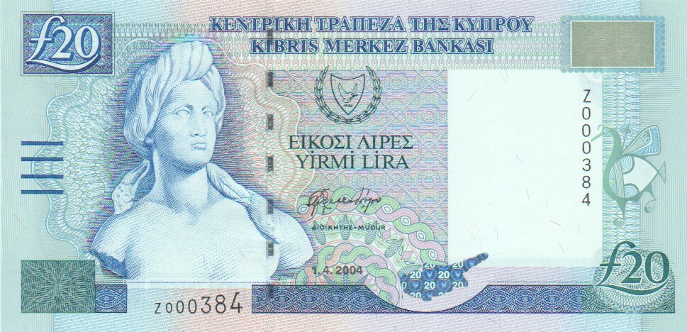Cyprus 20 Pounds,  1.10.199763a20 Pounds 1.10.1997VF+£25.00