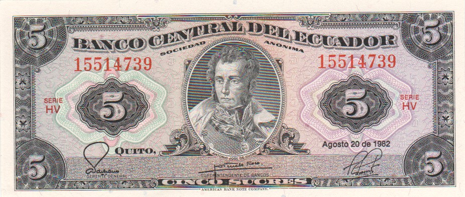 Ecuador 5 Sucres, 20. 8.1982108b5 Sucres20. 8.1982UNC£3.00