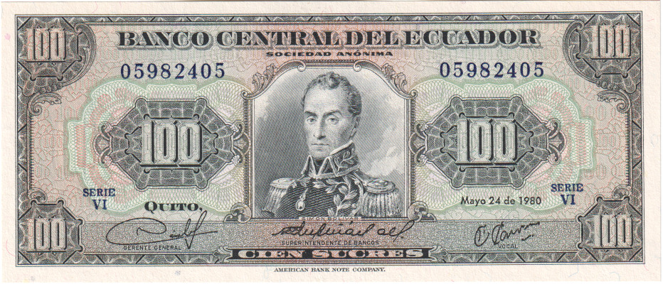 Ecuador 100 Sucres, 24. 5.1980112a100 Sucres24. 5.1980UNC£16.00